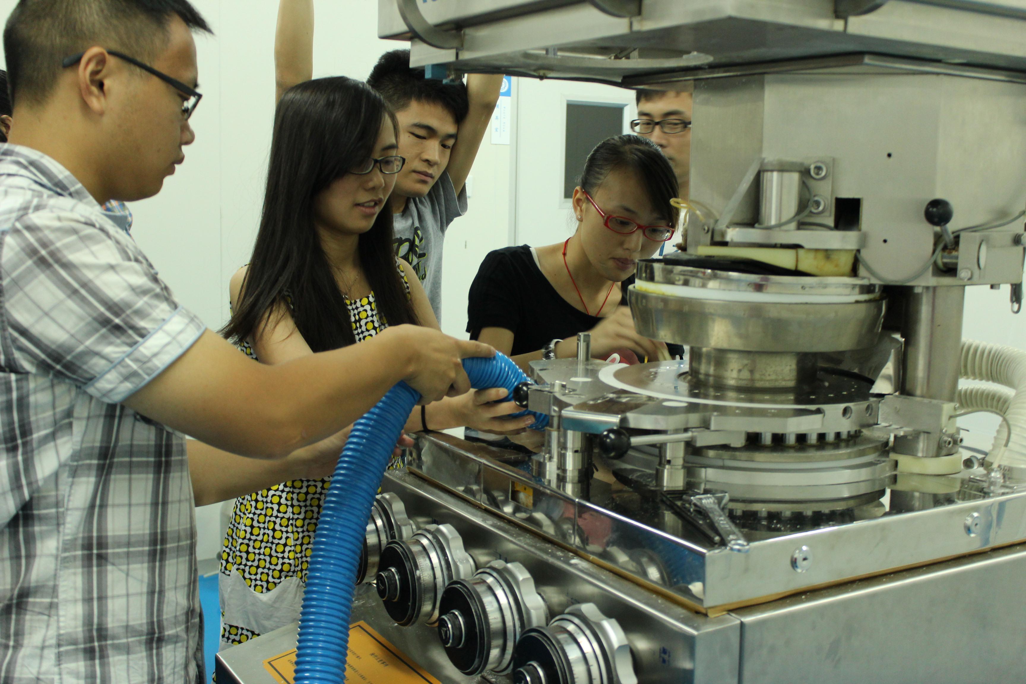实训期间,我校药物制剂专业学生在实训指导教师的指导下,认真观察设备构造及车间布局,积极动手操作,踊跃回答指导教师的提问,展现了我校学生勤奋学习、健康向上的良好风貌,实训中心领导和老师对我校药物制剂专业学生勤奋学习的态度和扎实的专业基础多次提出了肯定和表扬。