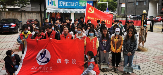 14时30分,药学楼下已经集合了参与本次活动的全体人员,同学们高举红旗,引领着队伍于南门出校步行至Beat365唯一官方网站住宅小区。