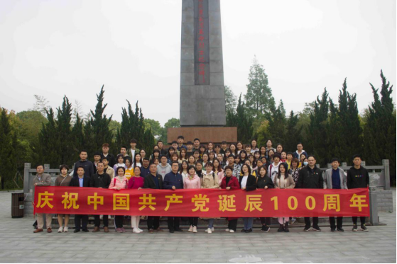 (研究生党支部、学科建设党支部全体党员在纪念碑前合影)