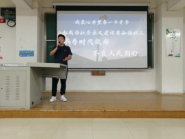 活动第一场宣讲由来自护理学院的荣加鹏同学带来的《扣在身上的中国梦》。中国梦,是中国共产党第十八次全国代表大会召开以来,习近平总书记所提出的重要指导思想和重要执政理念。具体表现是国家富强、民族振兴、人民幸福,实现途径是走中国特色社会主义道路、坚持中国特色社会主义理论体系、弘扬民族精神、凝聚中国力量。荣加鹏同学认为作为新时代大学生的我们应该把自身的目标同中国梦联系起来,为祖国的繁荣富强提供一份力量。