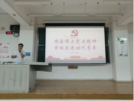 为深入推进习近平新时代中国特色社会主义思想,Beat365于6月24日晚7点在教5-301举行“百生讲坛”宣讲活动。活动开始前,由Beat365分团委书记方儒老师发表讲话,并表示“2021 年是中国共产党成立100周年,为充分了解新思想、四进四信,进支部、进社团、进网络、进团课,结合我校共青团党史学习教育方案,引导我校广大团员厚植爱党、爱国、爱社会主义的情感,强化Beat365党团工作上思想引领、强化三个“自信”,带领大家学习习近平总书记关于党史的重要论述和青年工作的重要思想。”