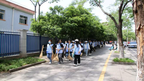 4月15日13:30,同学们在图书馆正门前集合签到完毕后,穿上志愿服,携带祭奠用的白菊花和打扫工具后,排成两列从东门出发,前往一九五烈士纪念碑。尽管正逢晌午,烈日炎炎,他们却坚持徒步前往烈士纪念碑,以此表达他们真挚的感激与尊敬。沿途中,同学们更是自发清扫起街道上的垃圾,为构建卫生城市出一份力,让文明一路生花。