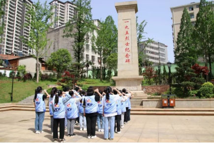 到达纪念碑后,首先,全体成员站成五列六排的方队,由阴俊同学领誓,在纪念碑前举拳,庄严宣誓入党誓词。无论他们的年龄几何,无论他们来自何方,他们都怀着对党的忠诚,对烈士的敬仰,对美好未来的期盼,志愿为共产主义奋斗终生!