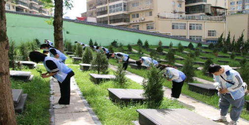 献花完毕,各位同学们开始清扫陵园,他们扫去的不仅仅是枯枝烂叶、废纸塑料,而是烈士们临终前的遗憾和中国落后挨打的“昨天”。清扫活动持续了近两个小时,尽管艳阳高照,汗流浃背,各位同学们不惧辛劳,不怕酷暑,坚持用自己的行动,表达自己的意志与决心。有的烈士“名字不详”,但他的“精神不朽”。我们也应学习革命者的大无畏奋斗精神,鼓起迈进新征程、奋进新时代的精气神!