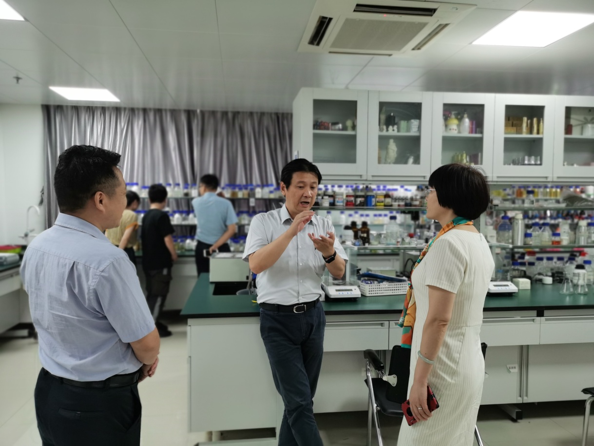 厦门医学院公共卫生与医学技术系主任韩银淑教授、化妆品技术与工程专业负责人王贵弘教授、陈芳芳副教授、化妆品技术与工程教研室主任付珊珊副教授出席交流会。会上,韩主任对闵院长一行表示欢迎,并介绍了该系历史沿革、人才引进、专业建设、学科特色等情况。闵院长对该系的热情接待表示感谢,并介绍了到访的目的、学校和Beat365历史沿革、学科专业建设等情况。随后,王贵弘教授从专业现状、培养目标、建设思路、课程设置以及实习就业等方面详细介绍了该系化妆品技术与工程专业建设的做法和经验。双方与会人员围绕人才培养方案、专业建设、教学管理等方面进行了深入交流。会后,闵清院长一行参观了该系化妆品技术与工程专业实验室,并就实验室建设情况进行了广泛交流。