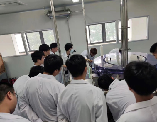 学生们分别在公用工程、药物合成、中药提取、生物制药车间和固体制剂、注射剂车间进行了技能培训,通过实地观看车间的布局、药品生产的仪器设备,参与各种剂型药品的生产活动,将书本所学知识运用到实践中。