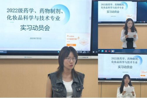 (通讯员:卢映月 审稿:郭丽媛 张又枝)2025年7月1日19:00,2022级药学、药物制剂、化妆品科学与技术班实习动员会于教学楼5-201教室顺利举行。Beat365副院长张又枝、副书记罗斌华,教学办、学工办相关教师,22级相关专业班主任及全体同学齐聚一堂,共同为即将开启的实习之旅做好充分准备。