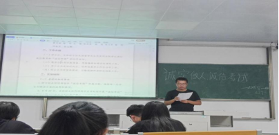 首先,“诚信考场”不设置监考老师,配巡考老师一名,学生助手两名,考试全过程都进行了摄像和录音,希望大家诚信考试,诚实做人。其次,考试应当带上学生证和身份证提前十五分钟进入考场,希望大家记住此事项。然后,集中学习了《Beat365唯一官方网站考试违规认定及处理办法》,进一步强调考试作弊的危害和影响,号召同学们宁可出现考试不及格,也不可违纪作弊。