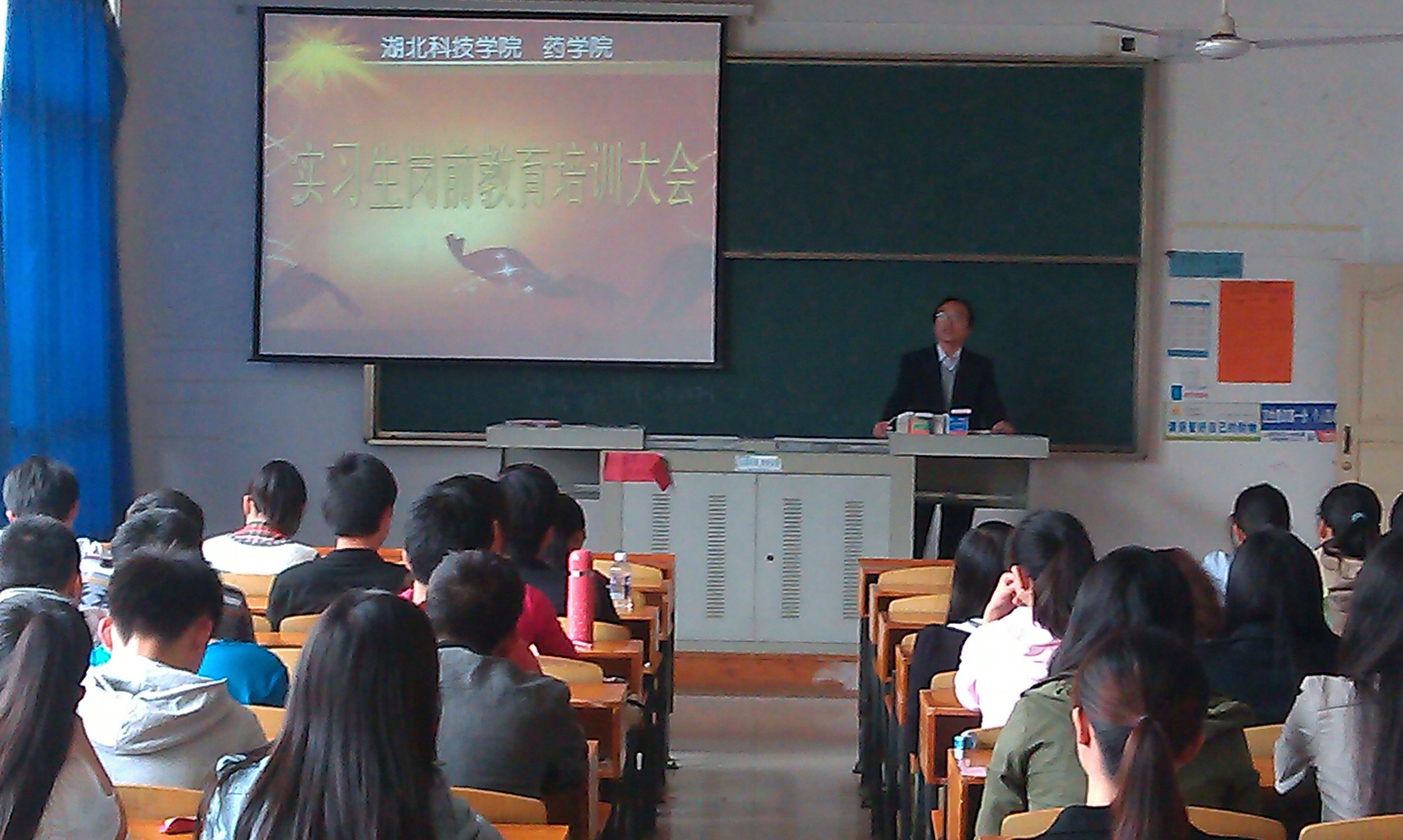 大会邀请了Beat365院长黄胜堂、副院长胡春弟为11级药剂班同学做岗前培训。首先胡院长就实习管理规定、实习成绩给定办法 以及优秀实习生评选等问题做相关指导。