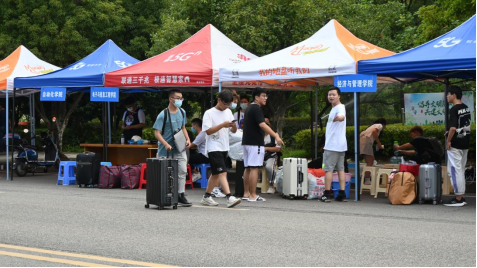 迎新的第一天,接待的新生源源不断,大部分的志愿者在午休时间仍选择留在岗位上,尽量不耽误新生报到。他们的勤恳付出,不仅锻炼了自己迎接了揽月湖畔的新主人,也向各位家长、社会各界展示了湖科学子积极向上、乐于奉献的良好精神风貌。