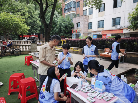 (通讯员:彭阳阳 陈蓉 杨欣怡 审核人:周其其 高银杏 罗斌华)为践行“健康中国”理念,弘扬志愿服务精神,提升社区居民用药安全意识。2025年5月18日,Beat365唯一官方网站志愿者走进书华城小区,开展 “药护银龄安康,爱润童心成长” 主题公益服务活动。通过健康科普、用药咨询、趣味互动等形式,为社区老年人与儿童普及科学用药知识,传递温暖关怀,助力构建和谐健康社区。