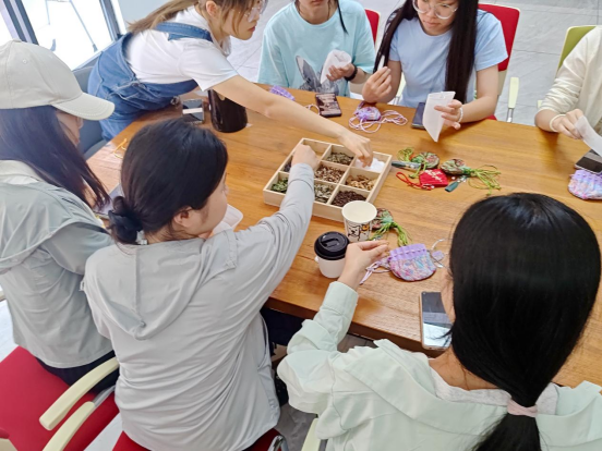 在中草药香囊制作区,Beat365心理部的工作人员耐心地指导参与同学如何制作香囊,大家围绕摆满薄荷、薰衣草等十余种天然香料的桌台,根据需求自由搭配,有人挑选檀香、丁香助眠,有人组合艾草、藿香驱蚊。将研磨好的香料装入精美刺绣布袋,草药清香萦绕指尖,在与传统草药文化的亲密接触中,在轻松的氛围里悄然消解了同学们的压力,大家捧着亲手制作的香囊,脸上洋溢着成就感与喜悦。