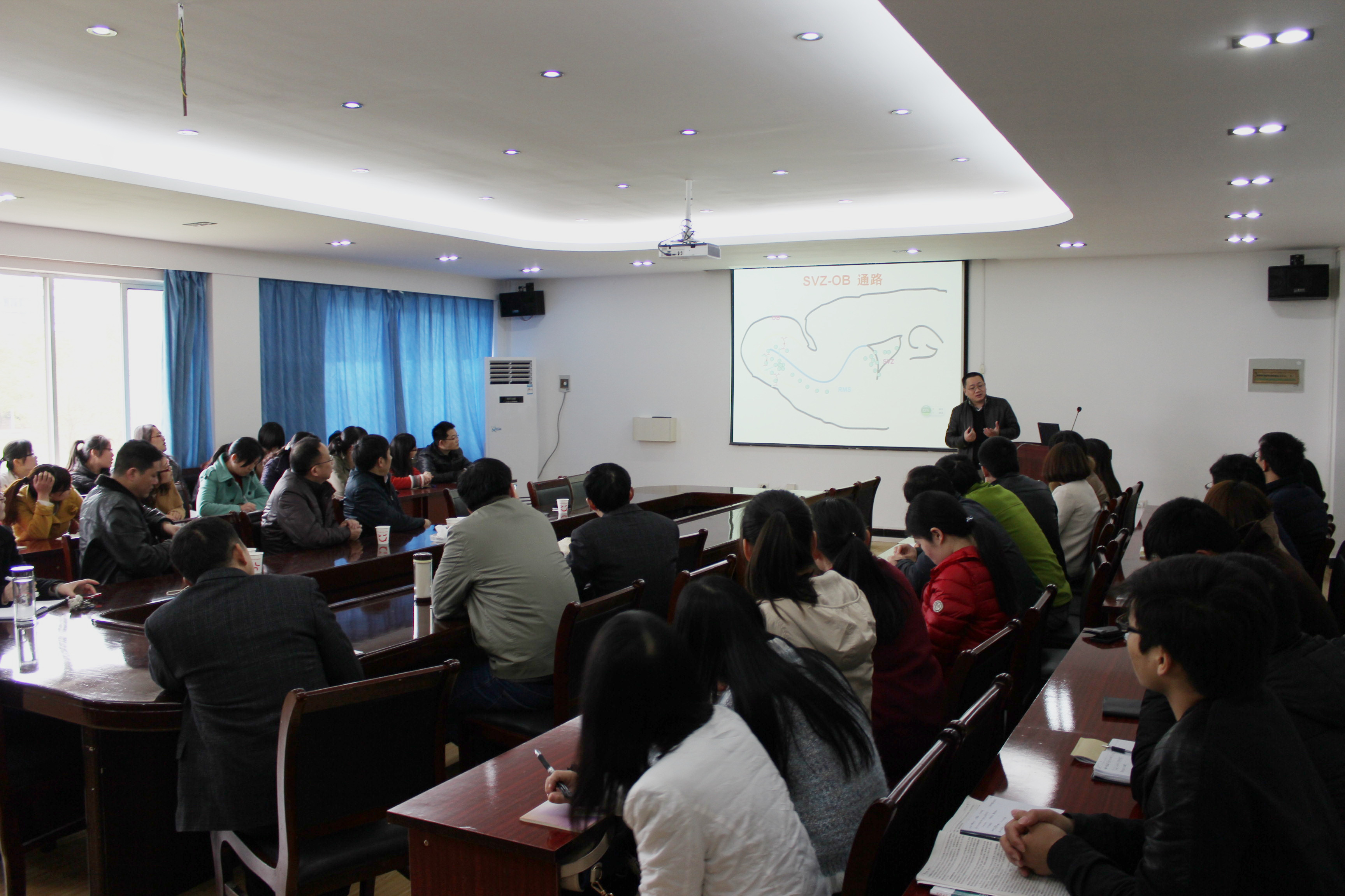 2015年4月9日 ,下午三点,来自中南大学的李家大教授莅临我校做了主题为“G蛋白偶联受体PKR1/2功能研究”的学术报告,Beat365院长黄胜堂、党支部书记闵清等领导和老师以及相关专业研究生参加了此次讲座。